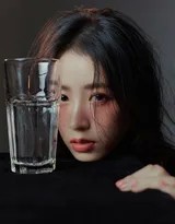 光影交错间回眸,眼神沉静而深邃,诉说无尽故事