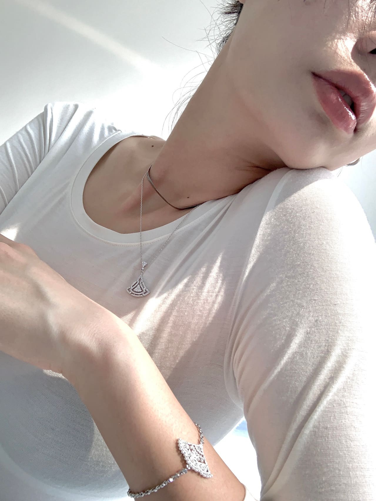 迪丽热巴以银发造型回眸,冷冽光影刻画其精致侧颜与清冷气质