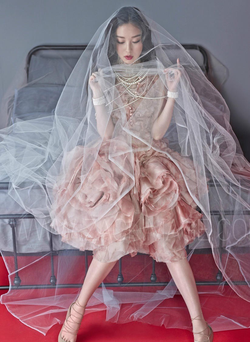 倪妮身着裸粉色纱裙侧首凝视,眼波流转间充满温柔故事感朦胧头纱半掩倪妮面庞 红唇微启绽放迷人妩媚气息倪妮一袭洁白婚纱立于花瓣雨中 回眸瞬间尽显静谧神圣之美柔和光线下倪妮轻倚沉思 纱裙如水倾泻气质恬静淡雅