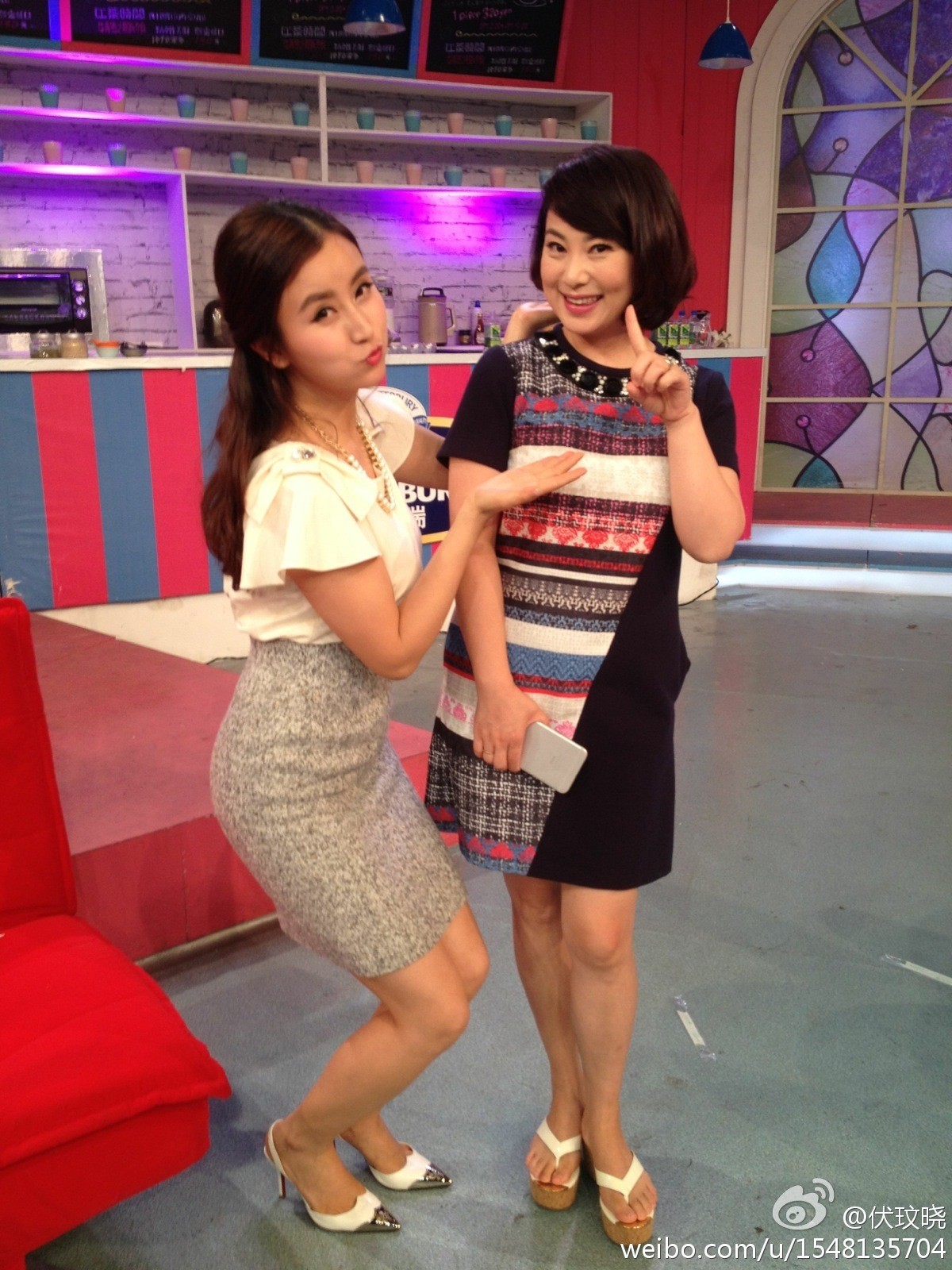 伏玟晓坐于高脚凳上,一腿微曲,展现出修长腿部线条与时尚高跟鞋的利落搭配